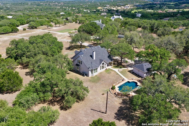 Beautiful Texas Hill Country Home in Boerne TX on 5.74 Acres Surrounded by Century Old Oak Trees in a Private Setting with Exceptional Views and Cool Breezes! 4 Bedrooms + Study, 3.5 Baths, Children's Retreat/Media Room-Flex Space, and an Amazing Keith Zars Pool. Enter Through The Grand Entry with Soaring Ceilings, a Private Study and Spacious Dining Room. The Home Offers an Open Floor Plan with Updated Kitchen that Overlooks the Family Size Living Room. Beautiful View Of the Pool from the Living Room with Impressive Vaulted Ceiling, Wood Look Tile Floors, and Wood Burning Fireplace. Lots of Kitchen Counter Prep Space for Baking and Cooking, Gorgeous Thick Granite Counters, Granite Breakfast Bar, Stainless Steel Farm Sink, Walk in Pantry, and Eat in Kitchen. Retreat to the Serene Master Suite Downstairs Overlooking the Sparkling Pool. Walk in Shower in Master Bath, Spa Tub, and Double Vanity w/Makeup Area. Upstairs Offers 3 Spacious Bedrooms and Media Room/Flex Space with 2 Bathrooms. Enjoy Cool Breezes at nearly 1400 ft Elevation and Stargaze the Dark Night Sky. Relax by the Keith Zars Pool, with Entertaining Space on the Patio w/Pergola. Detached Oversized Garage, and RV Parking. Room for the Horses, and Chickens, and Goats. Owners Enjoy Kayaking, BBQ's and Swimming at the Private Guadalupe River Access through 2 Homeowner's Parks. Convenient to Boerne's HEB, Medical Facilities, and Restaurants. No City Tax. Boerne ISD.