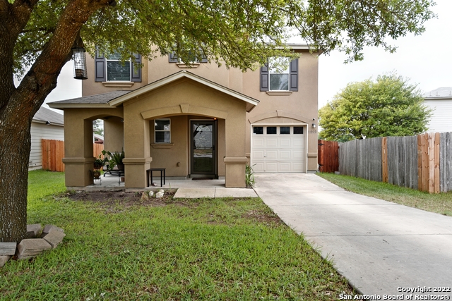 Buyer backed ou and this jewel has come back onto the market. Bring your buyers and check it out. Motivated seller, come make an offer. "PLEASE VERIFY ALL MEASUREMENTS" This is a beautiful starter home priced just right. The property is situated near a cul de sac and backs up to a green belt. It has a stucco front with siding on 3 sides and is a 2 story 3 Bedroom, 2.5 bath, with 1 car finished garage. Washer/Dryer room on 2nd floor. The property features a large backyard with a spacious 814 square foot patio with patio cover with established trees throughout the property. The backyard also has a 8 x 10 Tuff Shed for that extra storage space you need. You don't want to miss this one, it is in a quiet neighborhood and is conveniently located near the Club House, Pool and Basketball courts, 1604, Restaurants, Alamo Ranch Shopping center, several gyms, HEB, Wal Mart, Sea World, Fiesta Texas and Government Canyon . Dont Miss Out. Come see it today.