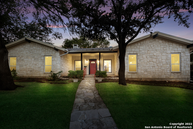 Get ready to be wowed by this stunning 3bd/2ba with separate office and full bath, one-story home nestled in the heart of Terrell Hills! The beautiful stone walkway immediately draws your attention and leads you to the board and batten entrance to the home, complemented by modern outdoor light fixtures. When you walk into the home, you will fall in love with the gorgeous vinyl wood flooring along with the abundance of windows that bring a ton of natural light into the home! The two large rooms that you first walk into could easily become a combination of a formal dining room and a study/office or even another small living area to relax in! The detailed crown molding and ceiling medallion piece create an even more elegant look to these rooms. The kitchen boasts a stunning, modern look with white cabinets and black fixtures throughout, including cabinet handles and the kitchen faucet! You will enjoy the stainless steel appliances, gas cooking, DOUBLE ovens, and an abundance of counter space that makes this feel like a chef's dream kitchen! Overlooking the kitchen is the family room, containing gorgeous, vaulted wood ceilings, a cozy stone fireplace with an oak mantle, a wet bar for entertaining, and custom shelving along the fireplace wall! The open floor plan in the house allows for this home to be perfect for hosting and the soaring ceilings make the home feel even more spacious! Relax in your luxurious master suite as you admire the dual vanities, backlit mirrors, white cabinetry and black fixtures. The bathroom also features a beautiful walk-in shower that contains a shower bench, a rainfall shower head, and wall mounted shower jets! There is NO carpet in this home! Enjoy the backyard while you hang out in the courtyard-style patio, providing you with an ample amount of privacy! This home is zoned into the prestigious school district of Alamo Heights and you are minutes away from Brackenridge Park, the Japanese Tea Garden and other excursions! You won't want to miss this one!