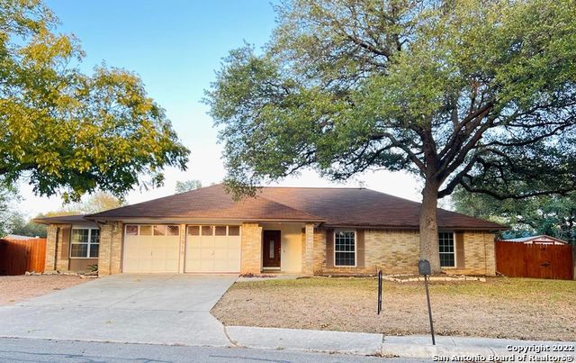 Perfect sized, fabulous 1 story home! Walking in to this home, you are immediately embraced by the abundance of natural light from the updated windows. This home boasts a modern feel with subtle touches of classic. Under your feet you can feel the quality of real hardwood floor; while over your head, you will appreciate the high beam ceiling in the living room. From the kitchen, you have full view of the large backyard as well as the dining room, living room, and gas fireplace. Fresh paint throughout assists in brightening up the house to make it feel like home. The oversized 2 car garage gives enough space for not just vehicles but for storage as well. Includes gas stove and outside shed. Easy drive to Fort Sam/BAMC, McAllister Park, and downtown San Antonio. Convenient access to 281 which quickly connects to I 410, Loop 1604, and IH-35.