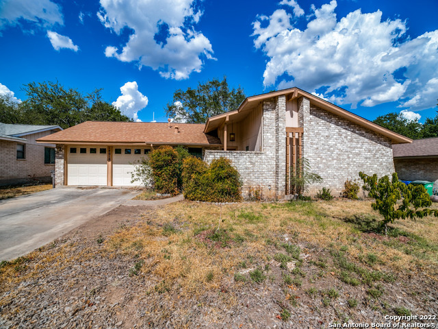 Look no further than this charming 3 bedroom, 2 bath single story home! Front door opens up to family room with vaulted ceilings and cozy brick fireplace. Primary bedroom has en suite bathroom with walk-in shower. Huge backyard with mature trees awaits and is ready for new owner to make it their own. No carpet in home. Great location with quick access to I10 and 1604. Convenient to shopping, restaurants, Six Flags, USAA.