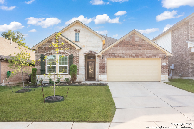 In the heart of Leon Springs, this home site in desirable, gated neighborhood of The Heights of Two Creeks. In the past year the homeowners have added: a new tree in the front yard, back yard grass and French drains, new gutters, new carpet, and a new stove/dishwasher/microwave in the kitchen. Tons of natural light flow through this one-story home. The master suite overlooks the backyard and features a double vanity with granite and an oversized walk in shower. The open kitchen is a perfect spot to entertain guests and interact with loved ones. The neighborhood pool is only 2 blocks down the street!