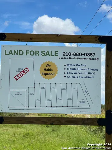 Come get your beautiful piece of countryside land! Beautiful 4 acre fenced in lot! Mobile homes & animals allowed. Owner financing available. Per Karnes electric, new owners will be credited $6900 for their meter. Property right off of Hwy 97 and about 15 minutes outside of 1604.