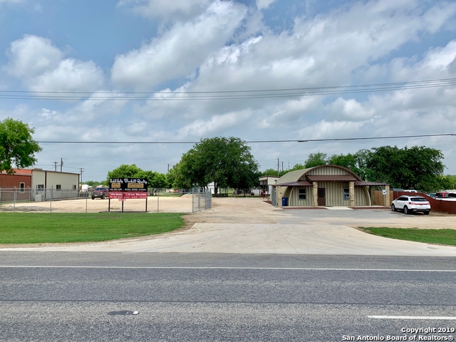 FOR LEASE - Commercial/industrial yard with great visibility directly on US Hwy 281 in Pleasanton, TX. The office has an open clerical area for 2-3 employees, 2 private offices, kitchenette, and two restrooms (one with shower stall). There is a small lay down yard that is covered in limestone and chain link fenced. Also included is a 40'x25' open sided shop and 8'x40' shipping container for tool storage.