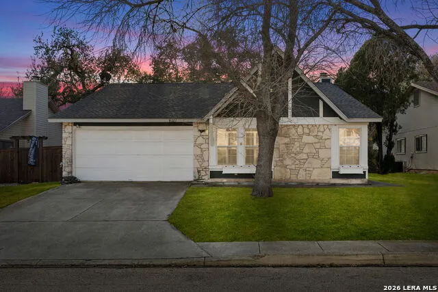 Welcome home to this charming single-story gem offering 3 bedrooms, 2 baths, and a 2-car attached garage-all designed for comfortable, easy living. Step inside to a spacious living and dining room combination featuring high ceilings and a cozy fireplace that creates the perfect focal point for gatherings or quiet evenings at home. The kitchen is both stylish and functional, showcasing granite countertops, ample cabinetry, and an additional eating area ideal for casual meals or morning coffee. The open layout keeps everyone connected while still providing defined spaces. The private primary suite offers a relaxing retreat with a full bath that includes a double vanity and an oversized walk-in shower. A thoughtfully designed walk-through laundry area connects the primary bedroom to the kitchen, adding everyday convenience right where you need it most. Wood-look flooring and tile flows throughout the home-no carpet, just a clean, cohesive look that's both modern and low maintenance. Conveniently located with quick access to Highway 151 and Loop 410, this home makes commuting, shopping, and dining a breeze.