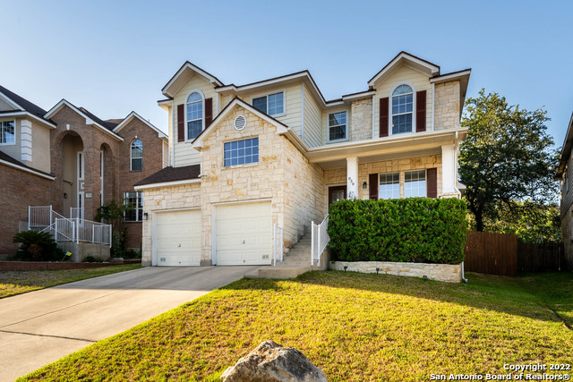 This gorgeous and stunning two-story home built by McMillan is located in a gated access community of Panther Creek at Stone Oak sub-division. 838 Maltese Garden is a 4-bedroom 3-bathroom home with a cream stone front elevation, maroon shutters, arched windows, stucco on first floor, neutral sidings on second floor sits on an elevated premium lot and its front porch opens to a panoramic view of Camp Bullis green belt and a beautiful sunset. The formal living and dining areas, which are right off the entry, create an open floor plan which conveniently lends itself to relaxing with and entertaining loved ones. First floor is enriched with hardwood flooring and tiles. Spacious living room has cozy fireplace and tall extended windows capturing the natural light supported by wall embedded surround speaker system. The kitchen also showcases granite counters with tile back splash, stainless-steel appliances, and staggered cabinetry. The island counter located centrally in kitchen provides extra space for cooking. The breakfast area features a box window, elegant chandelier and outdoor access. There is also a large back yard deck with canopy supported by 3 ceiling fans and 4 audio speakers which provide additional space for entertaining friends and family. This additional outdoor space is absolutely made for some serious backyard enjoyment! Fully grown fruit and evergreen trees planted all along the back yard fence provide privacy. There are 4 bedrooms with two full bath and a media room with a built in surround speaker system. Master bedroom is extra-large and offers space for an extra sitting area/reading area. There is an oversized master bath with a spa like layout which is perfect for stress free mornings. This roomy bath features a walk-in shower, soaking tub and two walk-in closets. Additional 3 bedrooms offer versatile space for kids to have their own space or can be converted into home office. The community offers a Sparkling Pool, Basketball/Tennis Courts & BBQ/Picnic area. A beautiful new clubhouse is currently under construction. Centrally located with access to Highway 281 and Loop 1604, this home is only a short distance from all San Antonio attractions. This amazing home is truly a must see and make it yours.