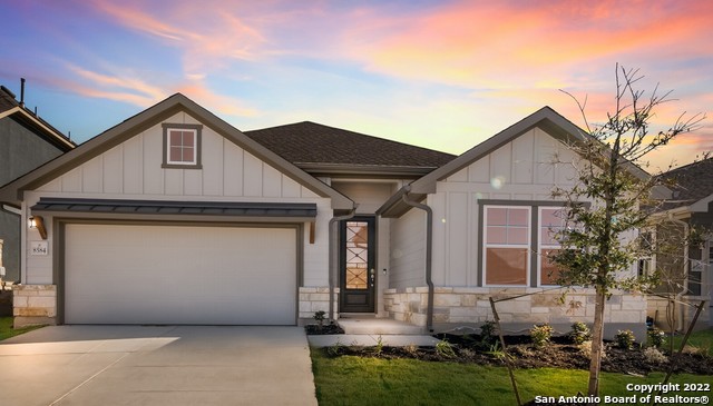 This Craftsman style home sits on a quiet cul-de-sac in the highly desired Crossvine Community. Gallery entry way invites you into the open family room to kitchen concept. Luxury light oak vinyl floors decorate the main living areas. Kitchen host white 42" cabinets, gas cook top, built in oven, granite counters and a grey subway tile backsplash. Master suite host a shower, soaking bathtub, and double vanity sinks. All vanities in the home have been raised to 36" for easy accommodations. Needing storage space, this home host 3 linen closets along with extra storage in the large laundry room. 8584 Stackstone features full sod and sprinkler in front, back and side yards! This home is located within walking distance from our beautiful community pool, amphitheater, and the Heritage Oaks City park.
